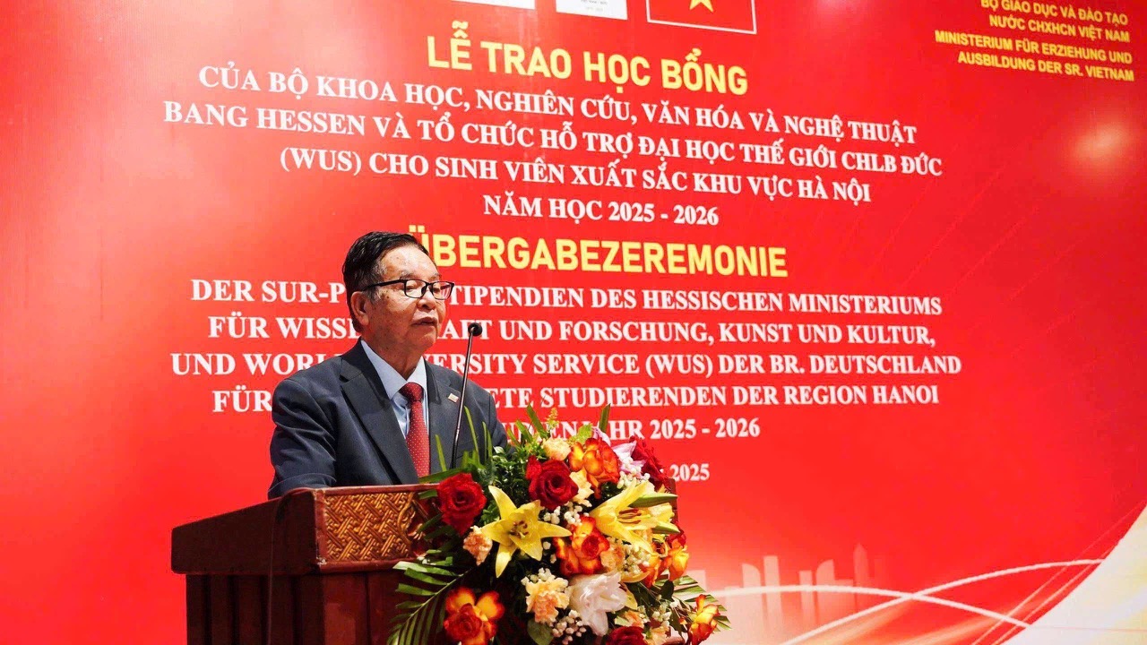 Ngày 12/12/2025, tại Văn Miếu – Quốc Tử Giám (Hà Nội), Văn phòng Đại diện bang Hessen – Cộng hòa Liên bang Đức đã phối hợp cùng Bộ Giáo dục và Đào tạo và Hội Hữu nghị Việt Nam – Đức tổ chức Lễ trao học bổng của Bộ Khoa học, Nghiên cứu, Văn hóa và Nghệ thuật bang Hessen và Tổ chức Hỗ trợ Đại học Thế giới CHLB Đức (WUS).